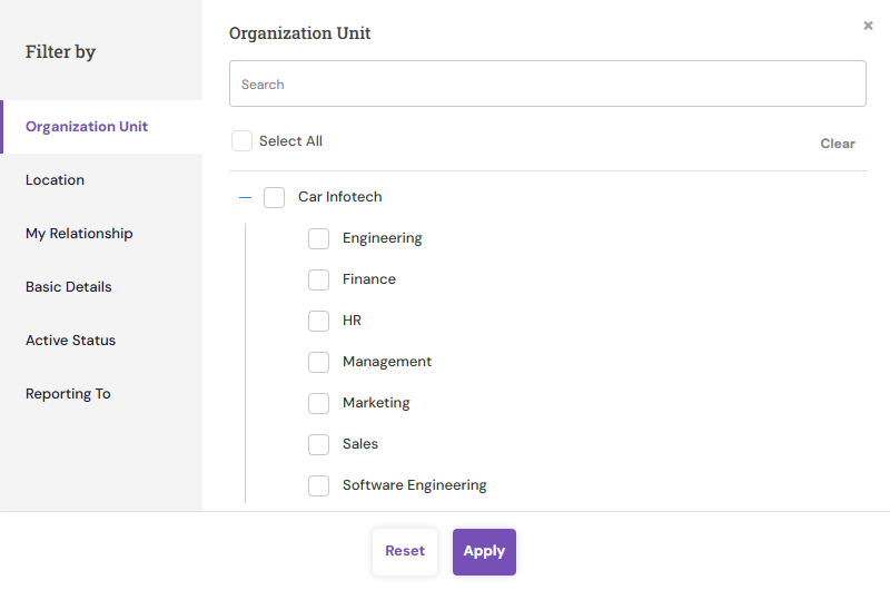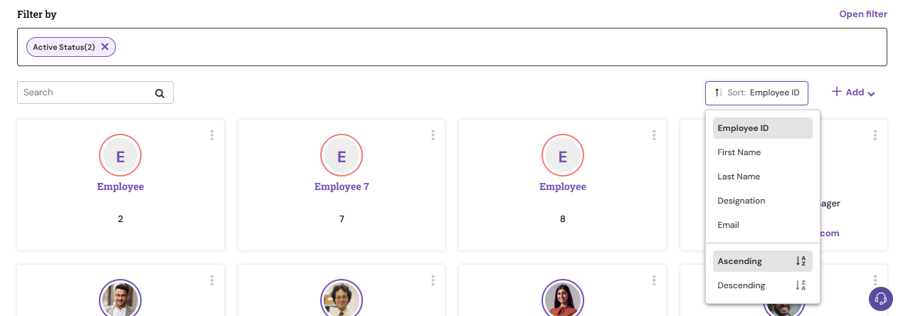 Filter the list of employees by entering relevant keywords, such as name, ID, or email.