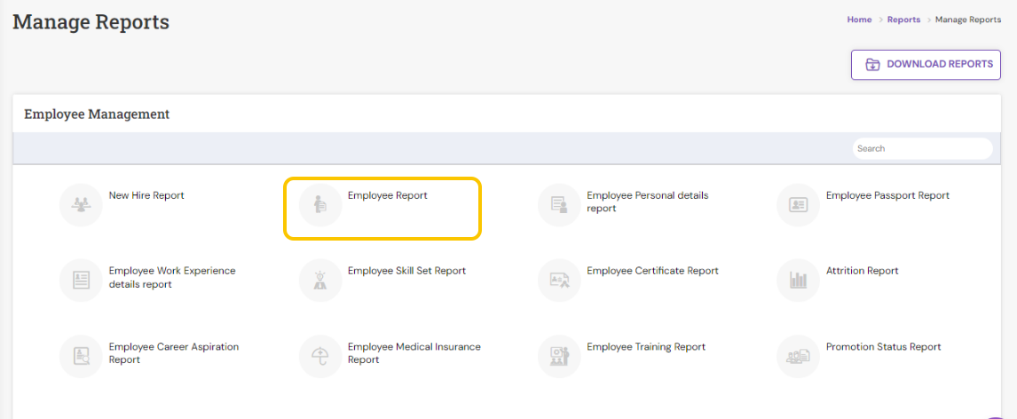 - Under Employee Management, click Employee Report