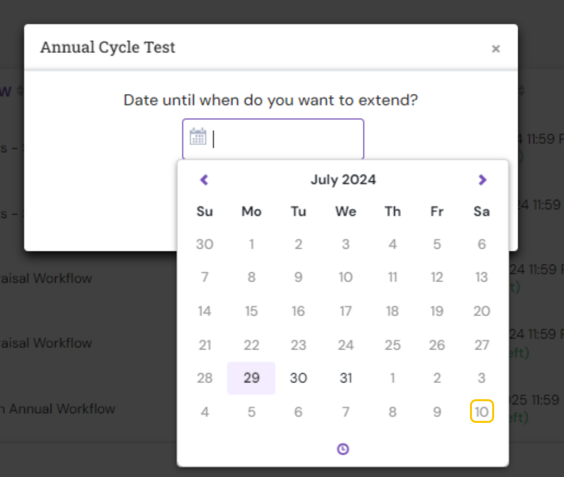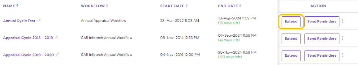 If the ongoing process requires additional time, you can extend the cycle due date. This ensures that employees and managers have sufficient time to complete their pending activities.