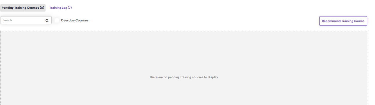 If there are no planned or pending training programs assigned to the employee, the section will display a message indicating that no training courses are available to attend.