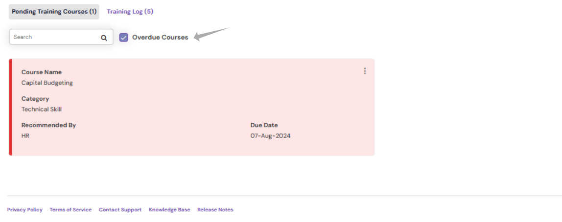 Pending Training Course(s) - This indicates the pending training programs yet to be completed by the employee.