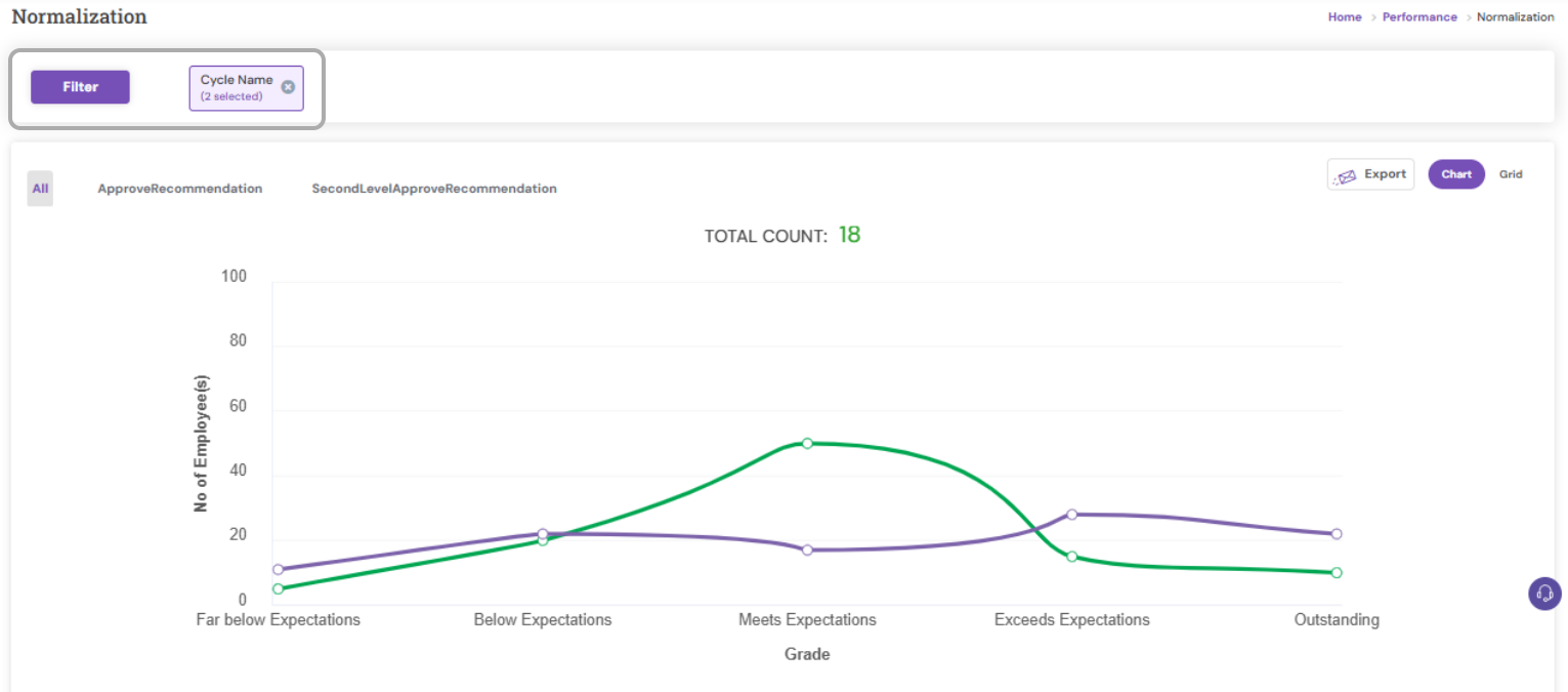 - HR can do normalization also for employees who are in the Approval (Approve Feedback and Recommendation) Stage and also can Approve or Reject the recommendation on finalizing the Grade.