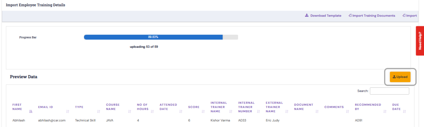 Once the data are imported , preview the data in the below section and click Upload to import it into the application.