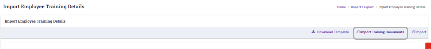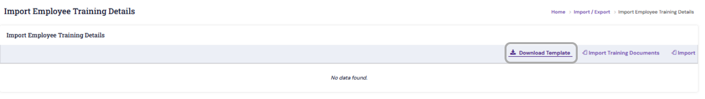 - If you would like to import the training document for an employee, download the Training Document Template. After entering the required details, click Import Training Document to upload it into the system.