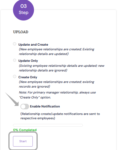 Import relationship feature helps the HR team bulk upload the relationship for employees.It lets HR teams quickly populate or update reporting relationships, manager assignments, and peer links across the organisation.