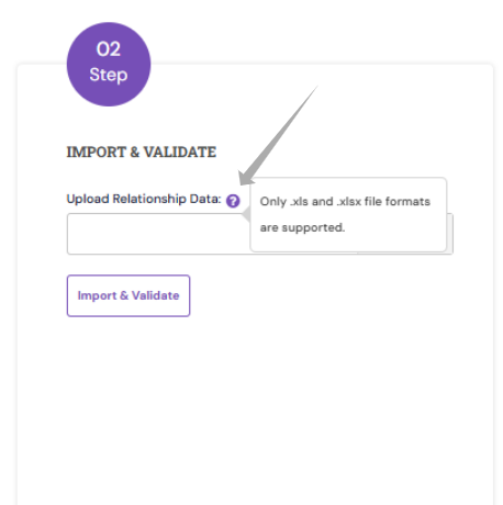 Step 2: To view the supported file formats, hover the cursor over the “?” icon in Step 2 while navigating through the import process.