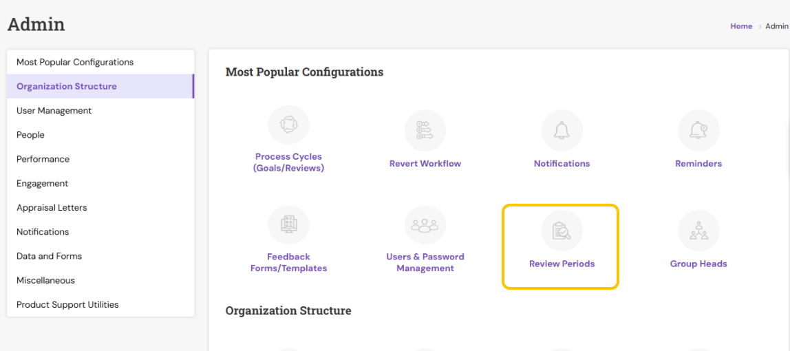 1. Navigate to Admin > Most Popular Configurations > Review period