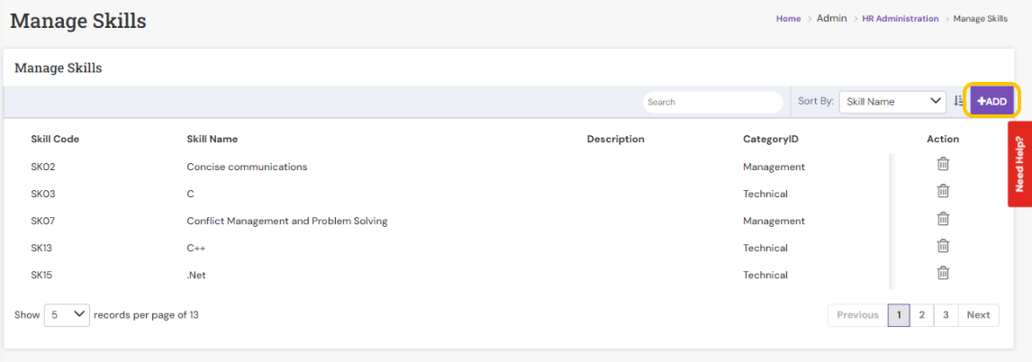 5. On saving, the newly created skill will be added to the Skill Name list under the Skills tab of the employee profile.