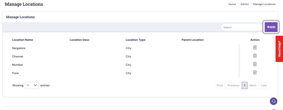 Locate the location you wish to update->Click the corresponding row.->Modify the required details (name, parent location, description, etc.).