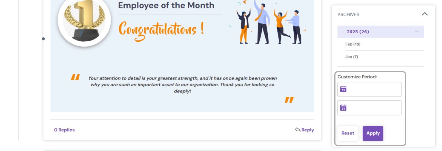 Towards the right side, click on 'Archives' to view the continuous feedback comments based on the provided dates.