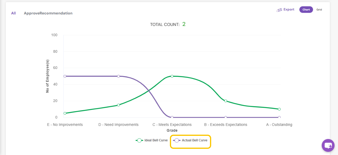 The actual bell curve is a reflection of how employees were truly rated. Comparing it with the ideal curve helps organizations maintain fairness, objectivity, and transparency in performance evaluation.