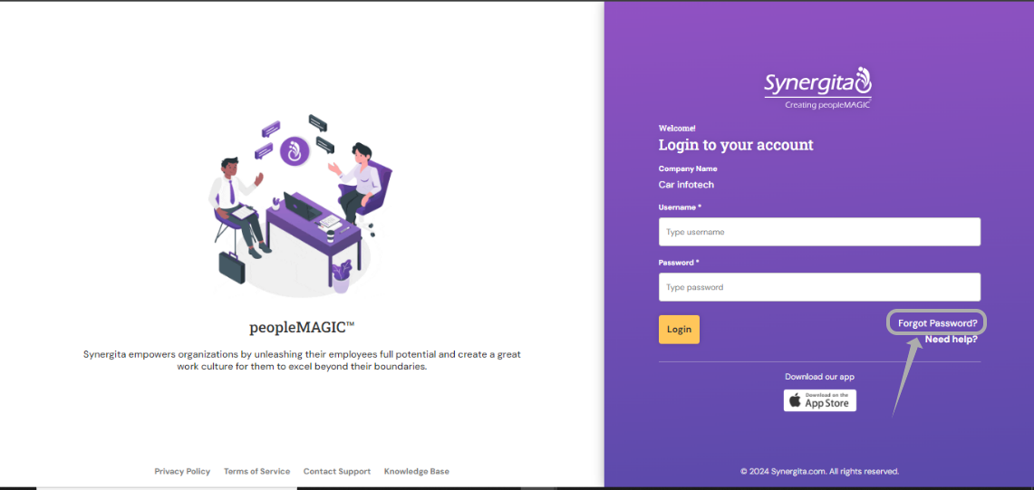 To access Synergita, users must enter a valid Username and Password on the login page. Occasionally, users may encounter issues during the login process