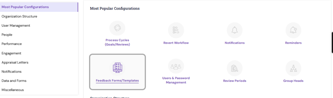 Navigate to Admin → Most popular configuration →Feedback Forms/Templates