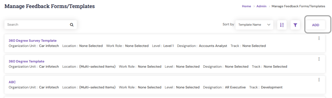 The feedback templates (like performance review forms, 360° feedback forms, or surveys) can be mapped to employees based on their designation.When a performance cycle begins, the system will automatically assign the mapped template to the relevant employees based on their designation (mapping logic).