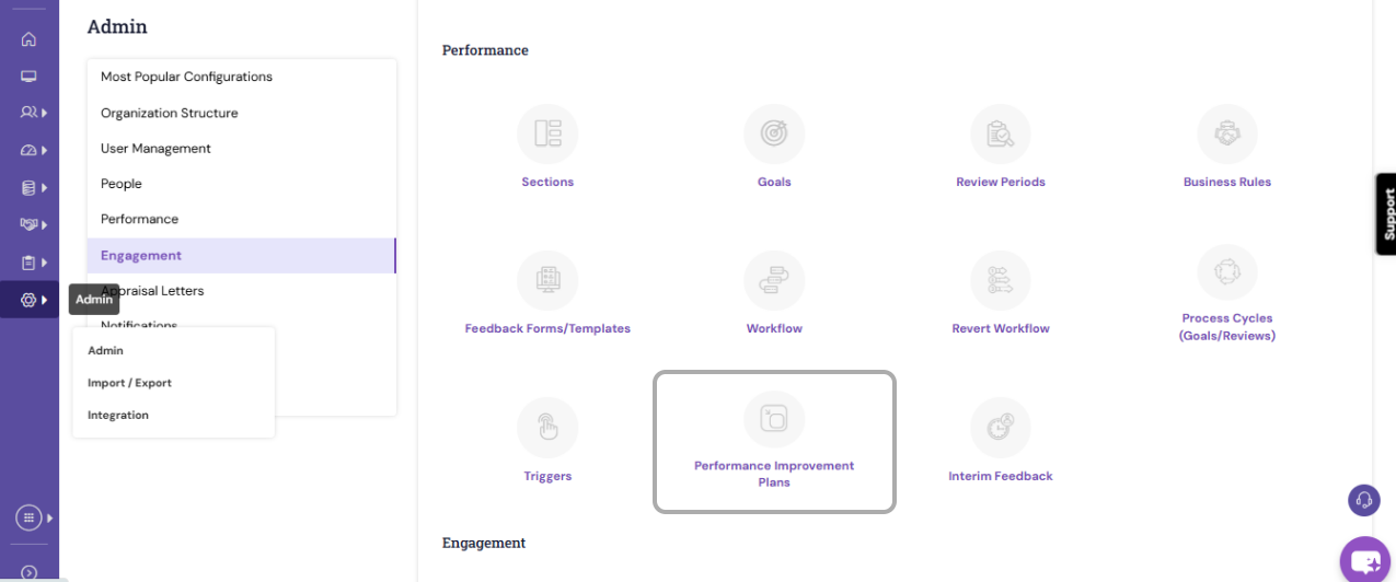 - Go to Admin → Performance Improvement Plans (Under Performance)