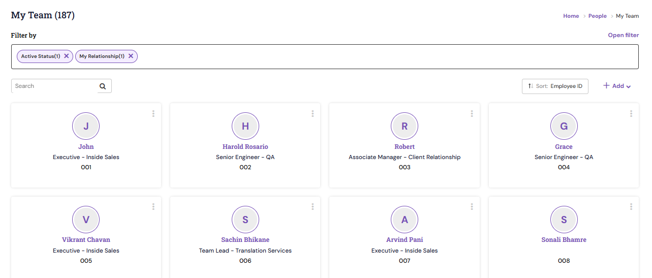 - Navigate to People > My Team.