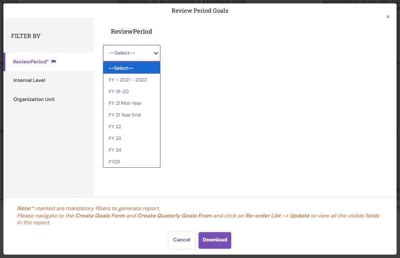 - Click Download under Review Period Goals