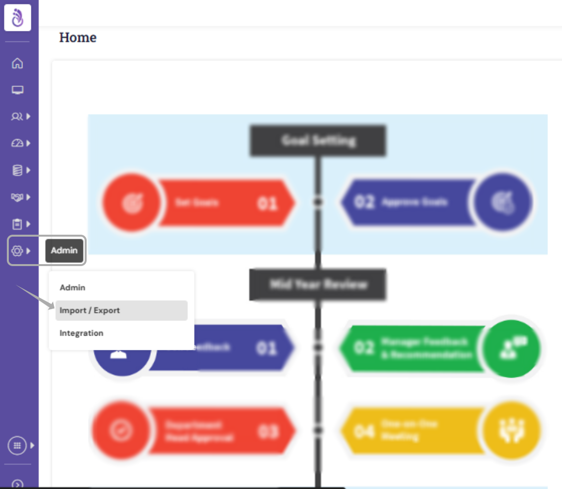 1. Navigate to Admin → Import/Export, and click Import Employee Goals.