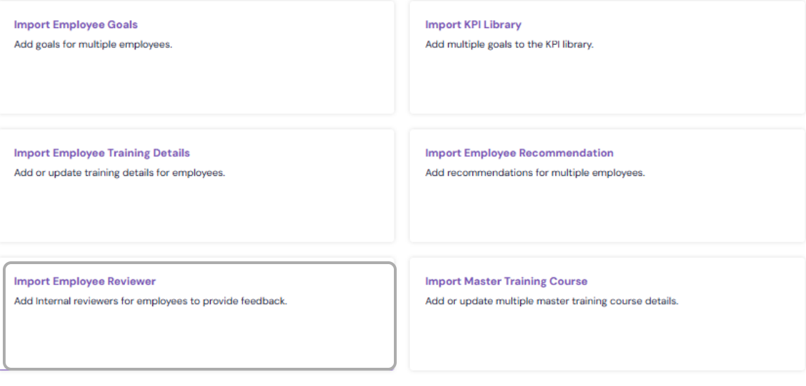 The Bulk Import Reviewers feature allows administrators to assign reviewers to multiple employees at once by uploading a predefined Excel file. This helps save time and ensures consistency in assigning reviewer relationships across the organization.