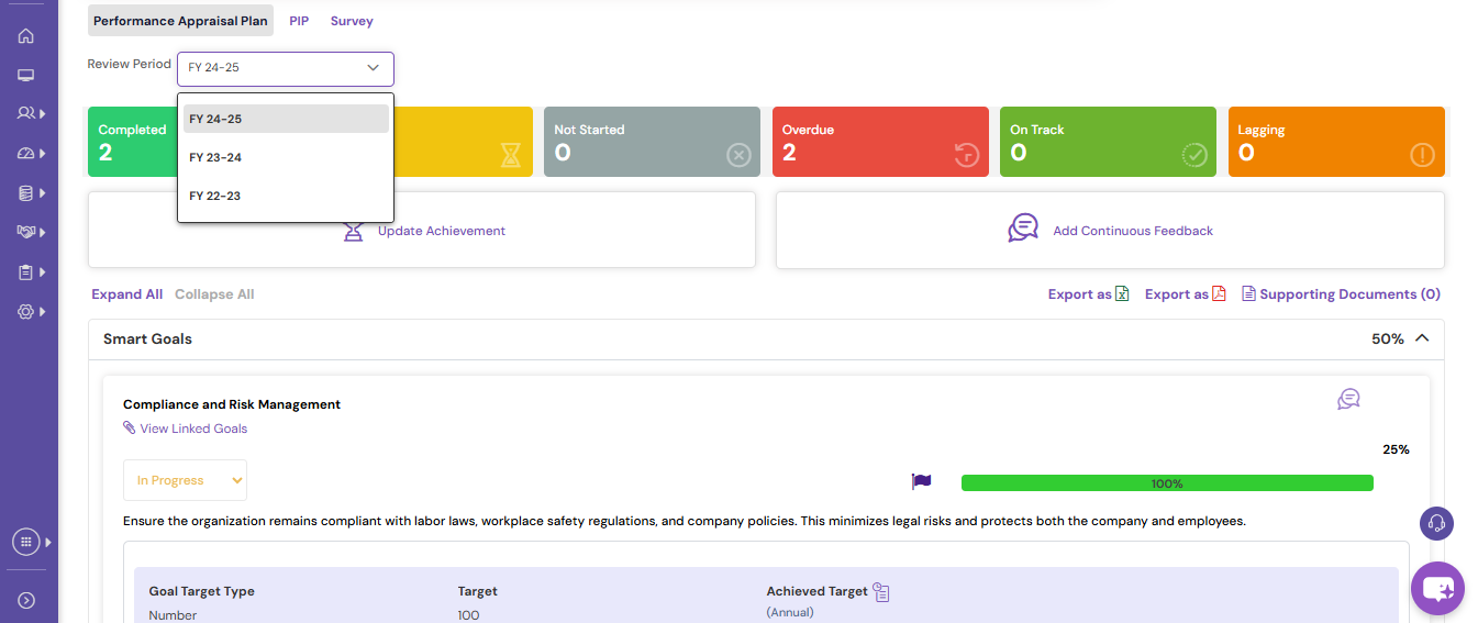 Your finalized and approved goals will be displayed. You can select the desired review period from the dropdown to view the goals approved for that specific period.