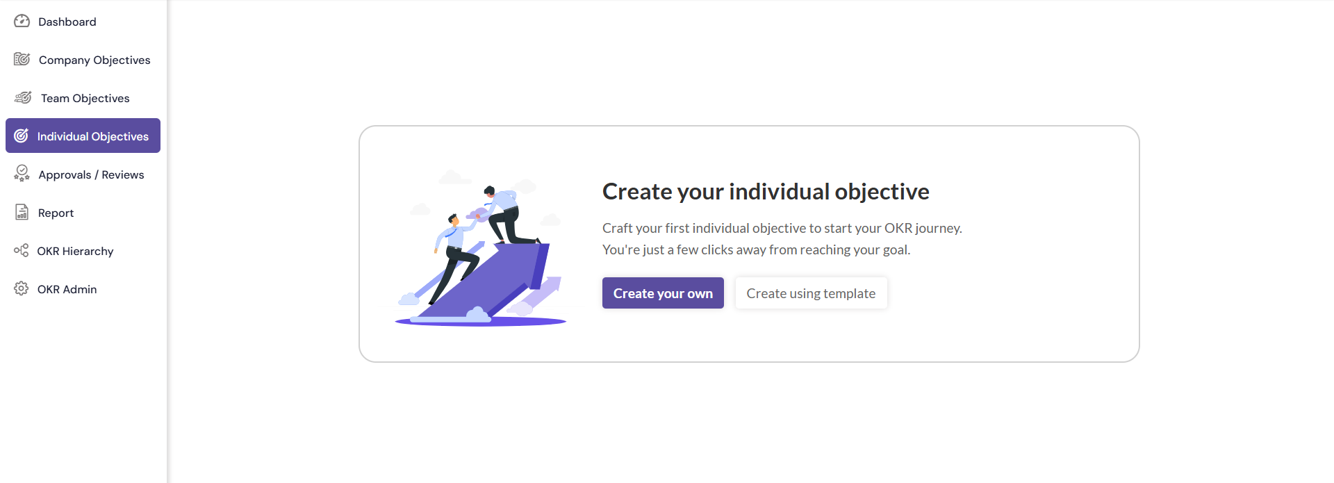 - Click on Individual Objectives in the left navigation menu to access the Individual Objectives creation page.