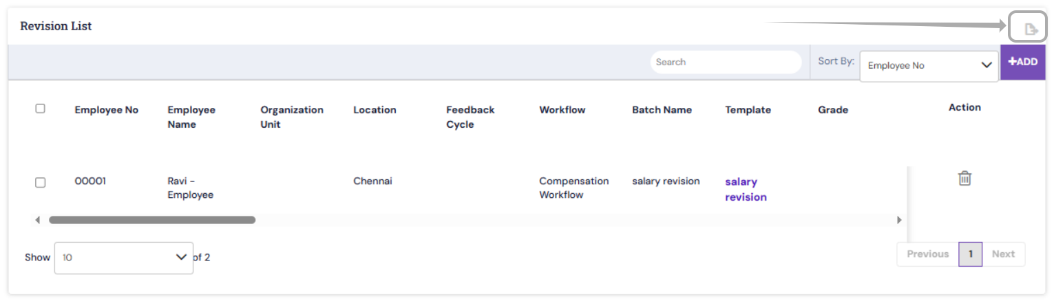 HR administrators can bulk export the details of all uploaded salary revision letters in Excel format from the Manage Salary Revision Letters page.