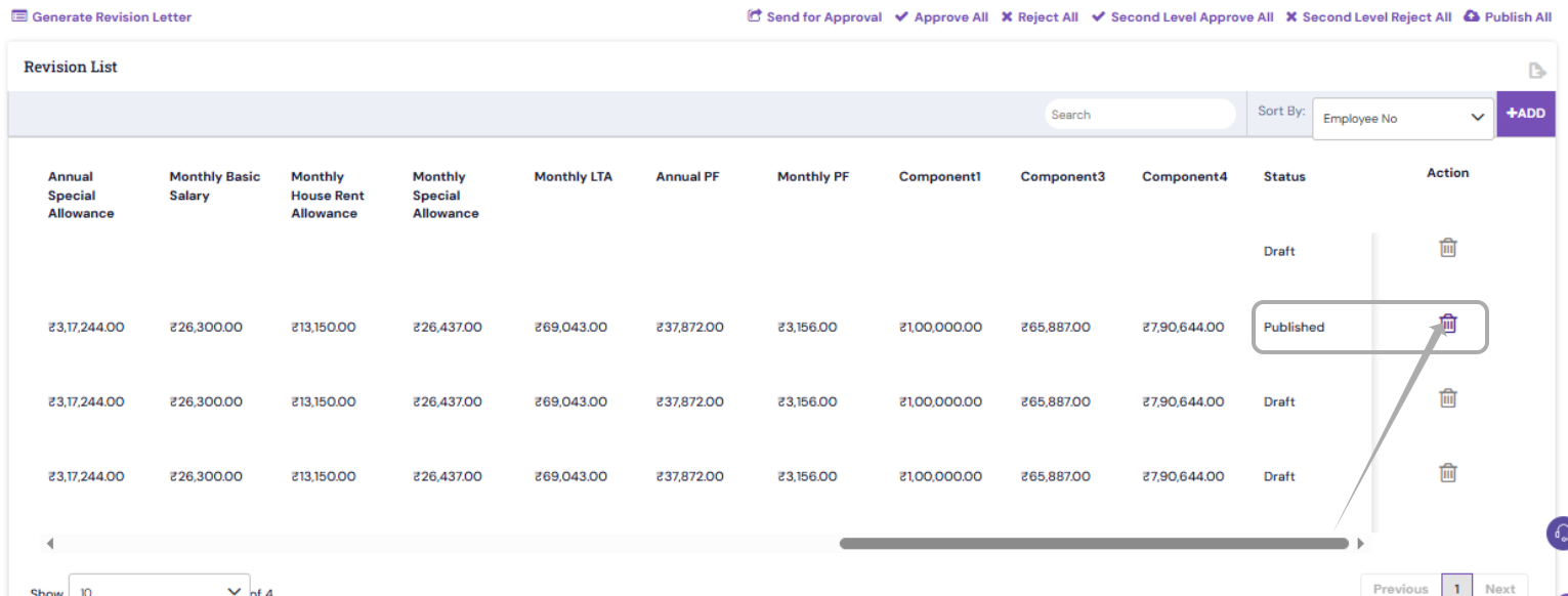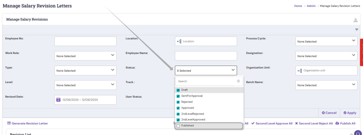 Navigate to Admin > Appraisal Letter > Salary Revision Letter