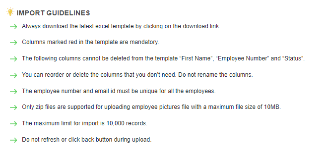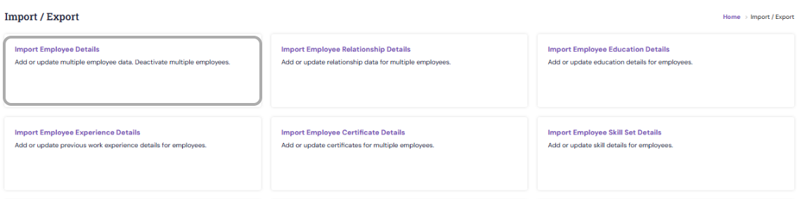 Navigate to Admin>> Import/Export, click Import Employee Details