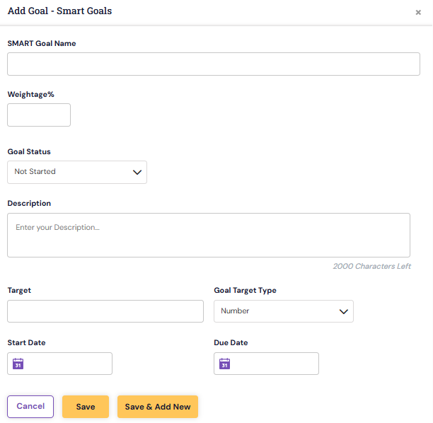 Weightage: Assign appropriate weight to determine the goal’s impact on overall performance.