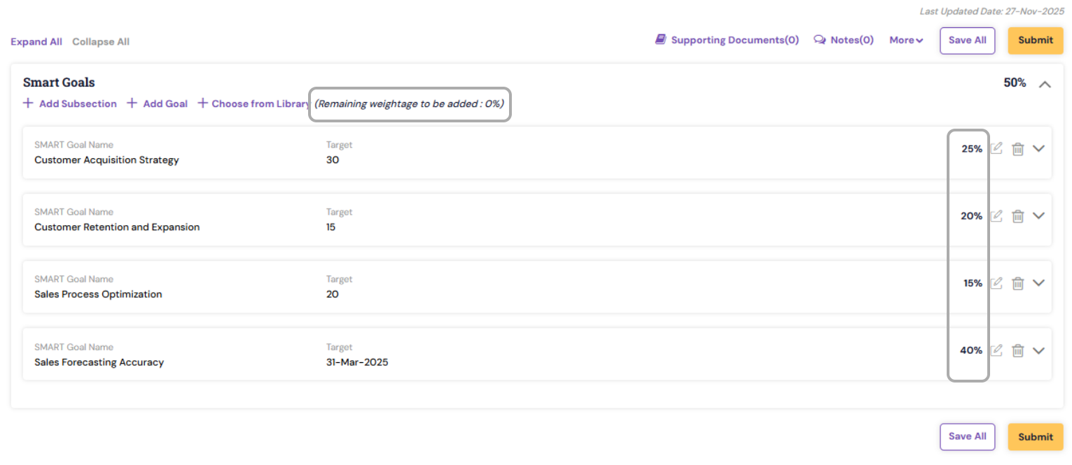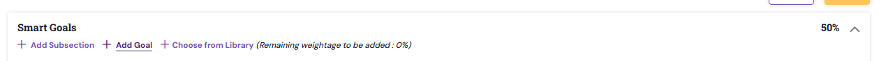 Additionally, you will get to see the remaining weightage to be added under a subsection's goal during the set goals activity