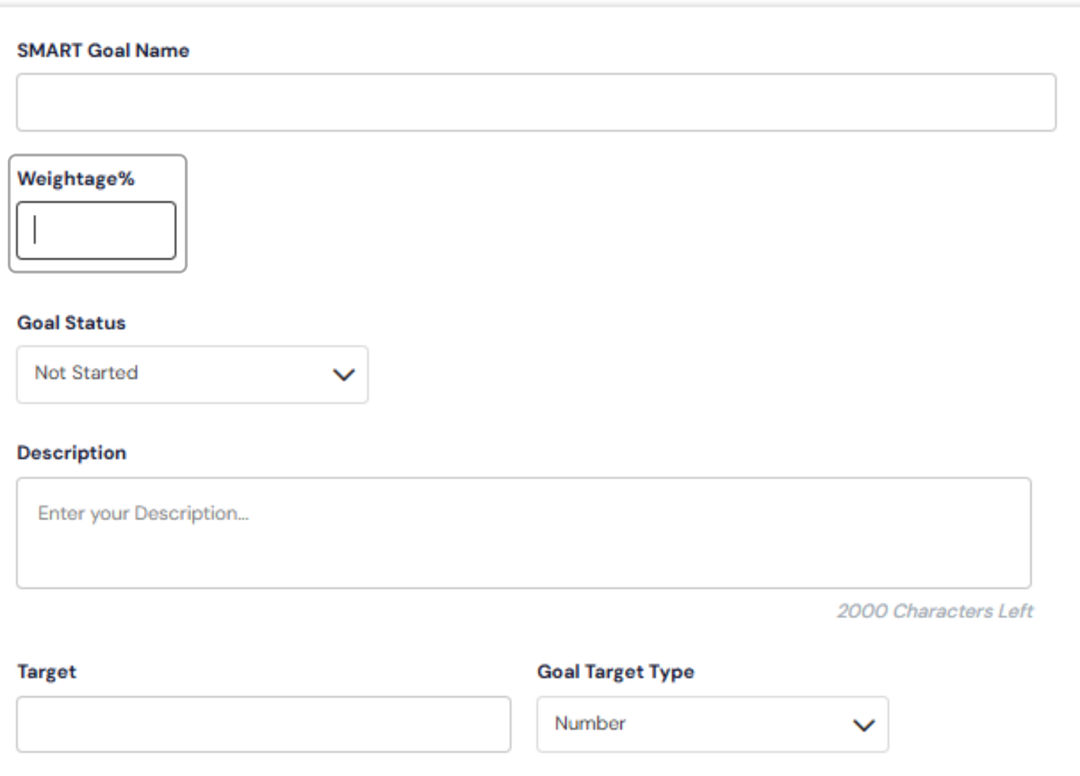 During the Set Goals stage, employees and managers can allocate weightages as part of the goal-setting process. This structured approach ensures clarity, fairness, and consistency in evaluating performance outcomes.