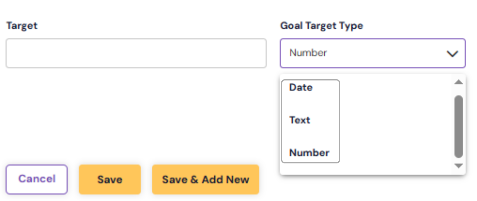 The Target type can be Date, Text or Number, based on the nature of the goal