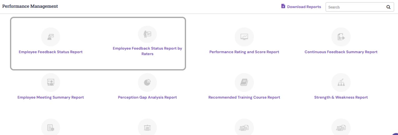 - Use the Employee Feedback Status Report or Employee Feedback Status Report by Rater available to HR under Reports > Reports (Under Performance Management). Select the relevant cycle and click the Export (Mail icon) to download the report. The exported file shows the rater-wise status, including whether each reviewer has started, is in progress, or has completed their rating.